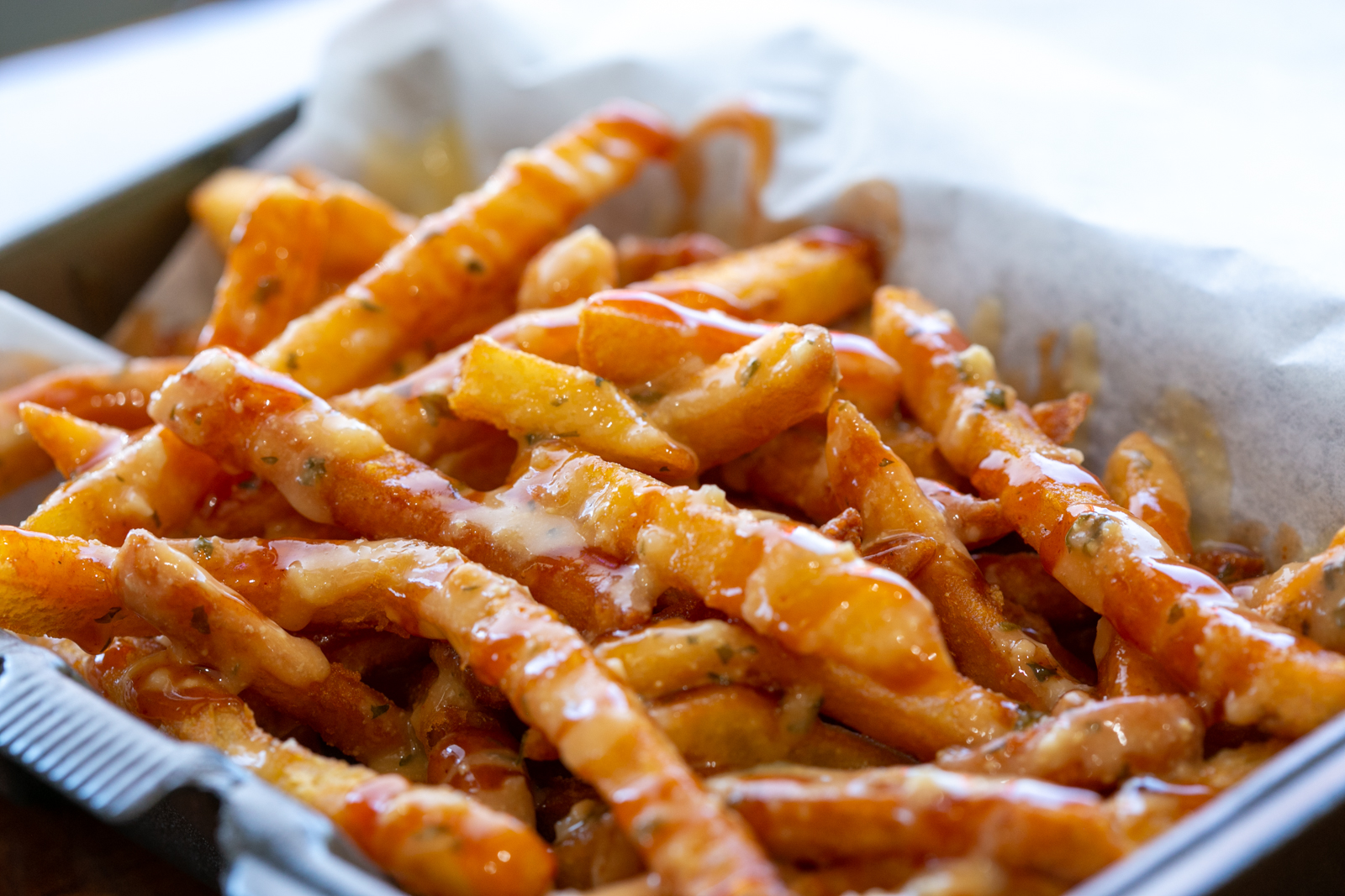 All of our meat and all of our veggies come straight from Kitchener Waterloo. We get our potatoes delivered to us from a local farm here in St Jacobs and we cut them fresh every hour! Our meat is from our local butcher shops and we hand prepare each cut of meat fresh everyday. We also make sure that the meat is the best quality and halal certified so there are options for everybody!